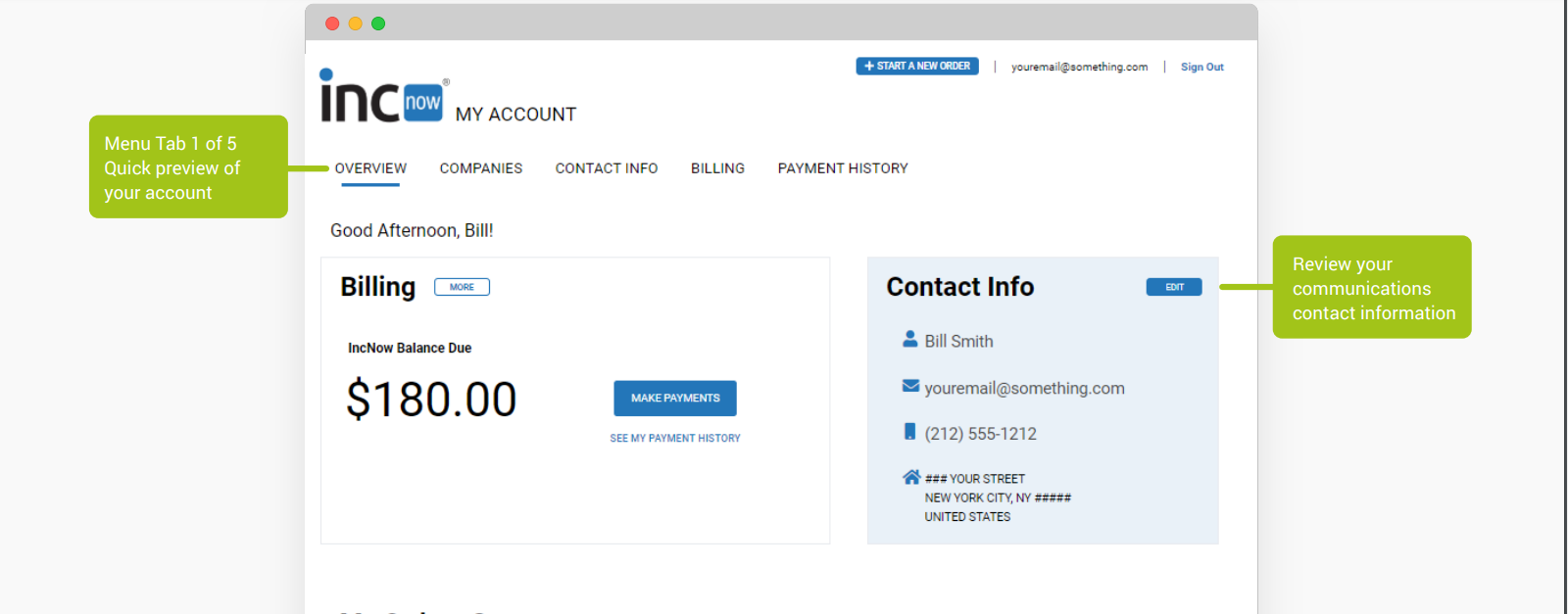 For example, IncNow has an innovative customer portal that helps business owners keep track of their business entities.